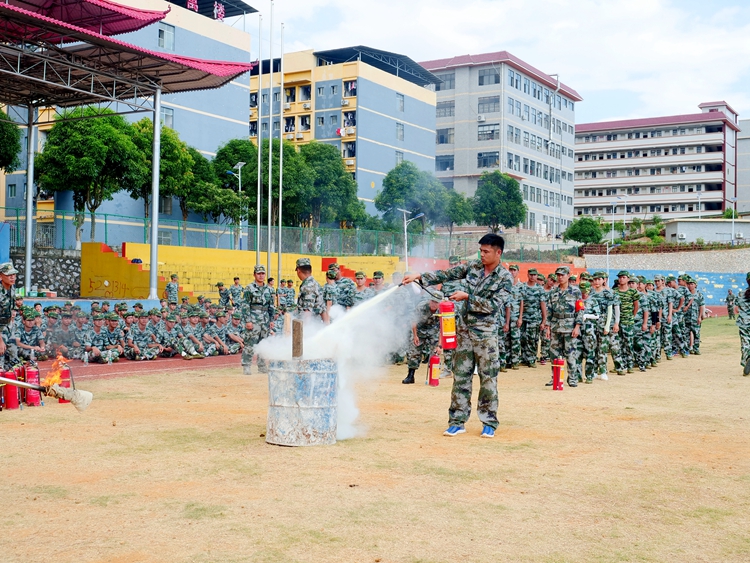 为加强2021级新生针对火灾事故的应变处置能力,培养紧急逃生及自救意识,更好地学习消防知识,8月30日,beat365把消防安全教育课融入军训中,在学校运动场举行2021年新生消防演练活动,2021级第一批新生参与演练。
