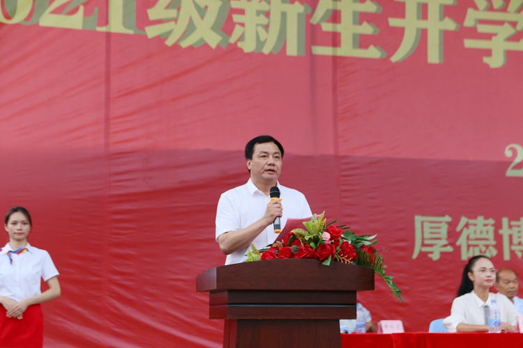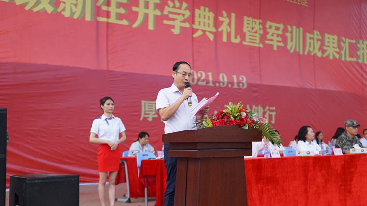 李益纪委书记宣布beat365唯一官网2021级新生开学典礼暨军训成果汇报会正式开始!