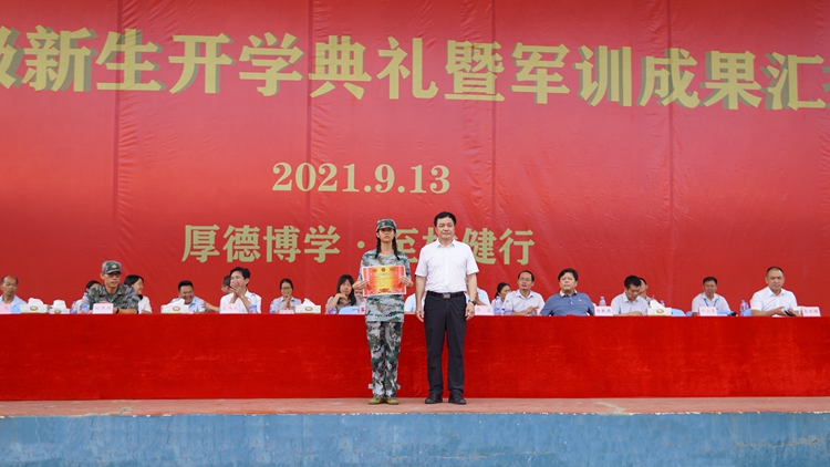 9月13日上午,beat365唯一官网2021级新生开学典礼暨军训成果汇报会在学校运动场隆重举行。