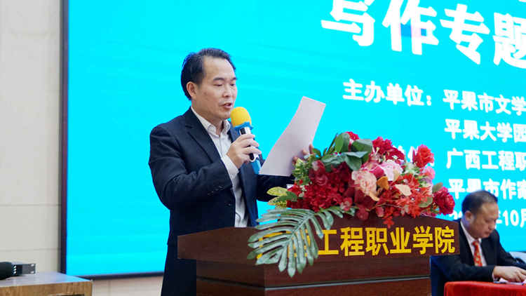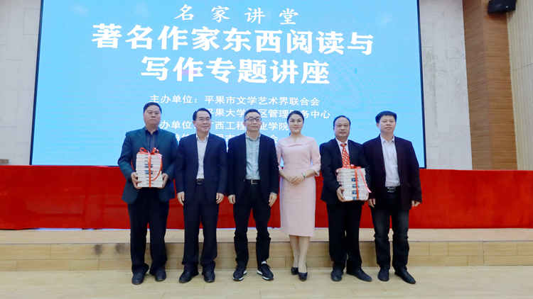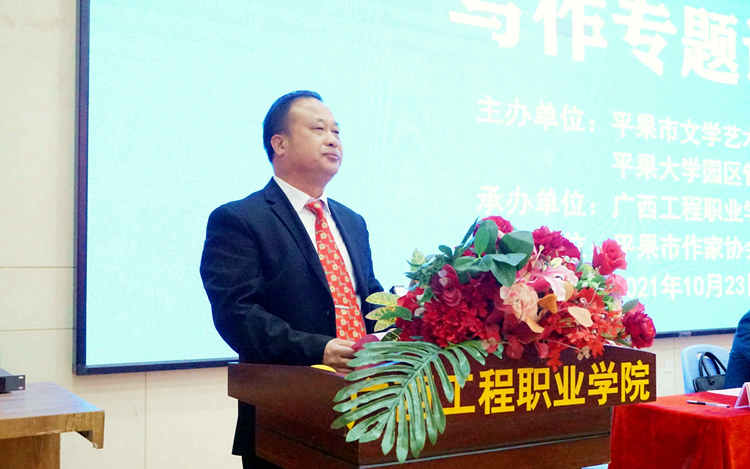 2021年10月23日上午,由平果市文学艺术界联合会、平果市大学园区管理服务中心主办,beat365唯一官网承办,平果市作家协会协办的平果市2021年“名家讲堂——田代琳(东西)阅读与写作专题讲座”在beat365图文信息大楼报告厅举行。