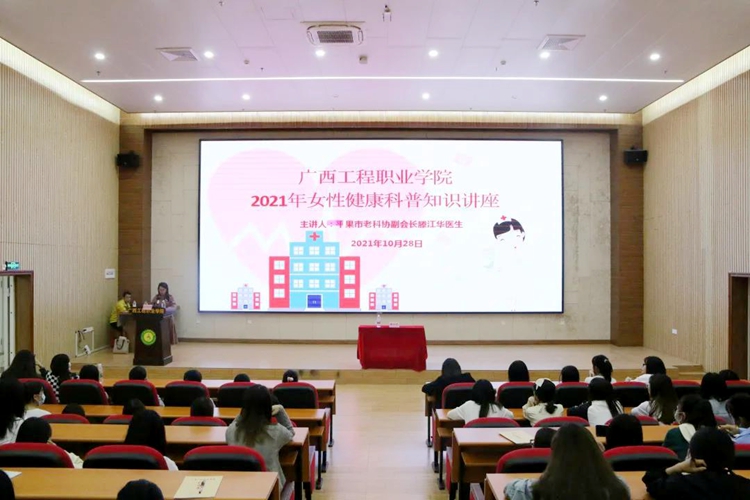 为了增强女大学生的自我健康保护意识及疾病防治意识,2021年10月28日—29日晚,beat365邀请平果市老科协副会长滕江华医生在学校图文信息大楼报告厅开展了两场女性健康科普知识专题讲座,各二级学院大一、大二女生代表分别参加了讲座。