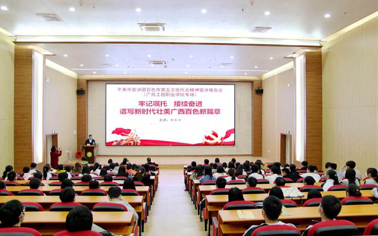 宣讲报告会上,张彩超副教授围绕百色市第五次党代会概况、深刻认识第五次党代会的背景和重大意义、深入领会百色市五年来八大方面的重大历史性成就、如何准确把握今后五年的一系列新任务和新目标以及学习贯彻第五次党代会精神的实践要求等内容作了深刻的阐述。