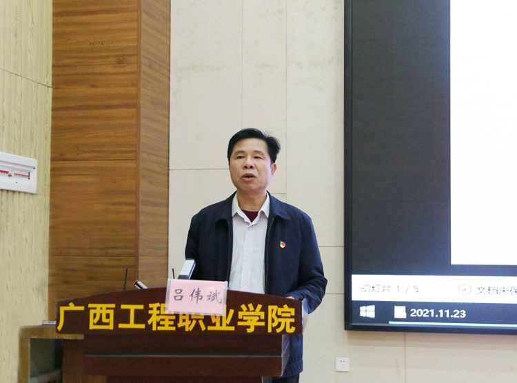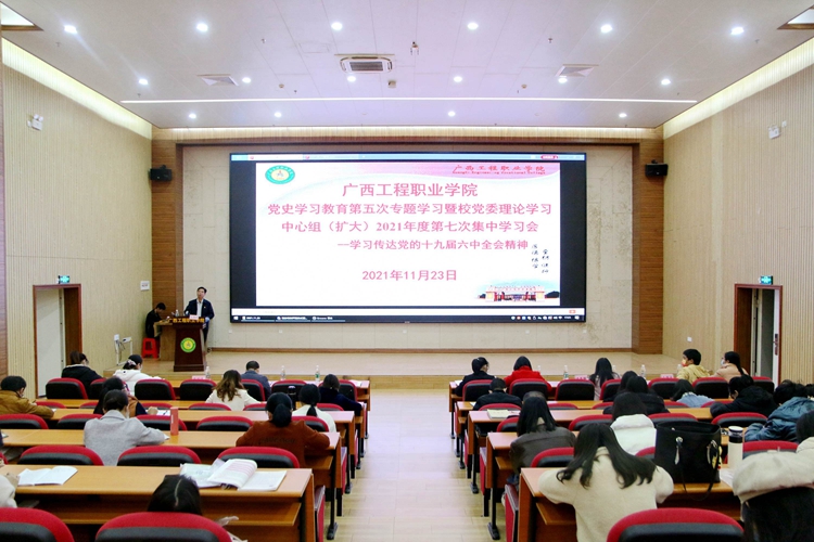 会上,校党委书记吕伟斌传达了党的十九届六中全会精神。他指出全体党员要进一步提高政治站位,深刻领会学习贯彻习近平总书记视察广西时的重要讲话精神的重要意义,把学习贯彻总书记重要讲话精神转化到学校工作建设中。学习好、宣传好、贯彻好全会精神,是当前和今后一个时期的重大政治任务。