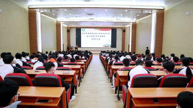 会上,黄秋霞助理主要从六中全会的基本概况、党的百年奋斗的四个伟大成就、新时代马克思主义中国化的伟大飞跃、党的百年奋斗十大历史经验、总结党的百年奋斗重大成就和历史经验的重大意义、党的十八大以来十三方面的历史性成就、两个确立的决定性意义以及以史为鉴开创未来的重要要求等方面,对党的十九届六中全会精神进行了全面解读和阐释。宏大的历史画卷和生动的讲解,让同学们深受触动和启发。