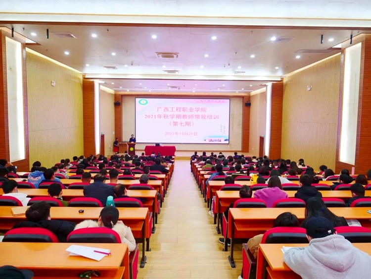 学校党委书记吕伟斌,党委委员、副校长彭高彬,副校长罗艳妮、吴先夏、黄德伟,校长助理黄秋霞、蒋茂丽、覃清香等校级领导,各部门负责人、各党(总)支部书记、行政人员、辅导员、专任教师等400多人参加培训报告会。报告会由吕伟斌书记主持。