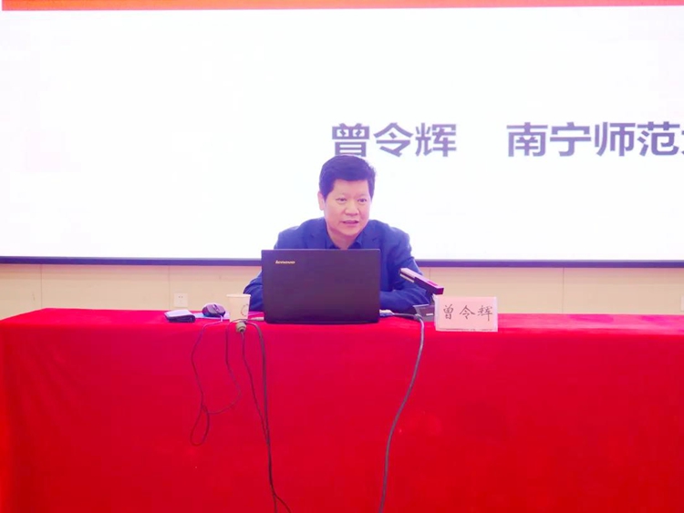 12月21日,南宁师范大学马克思主义学院院长曾令辉博士、教授、博士生导师在beat365图文信息大楼一楼学术报告厅为全校教师作教师能力提升常规培训专题报告。