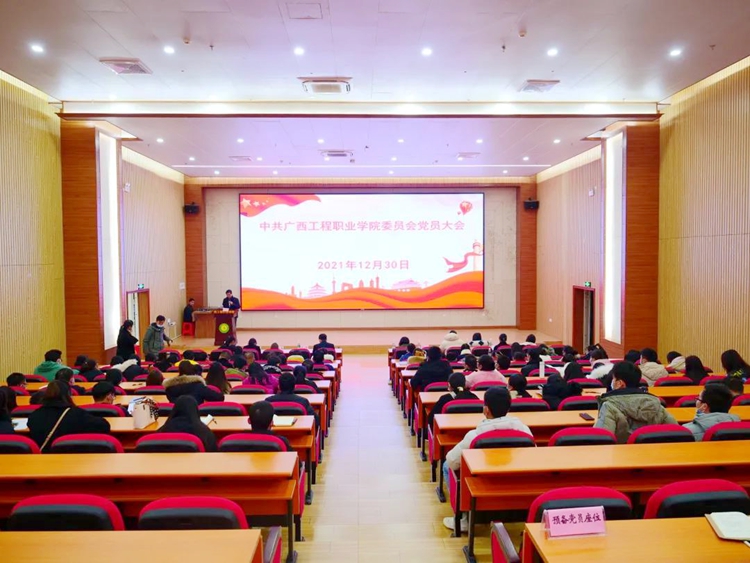 2021年12月30日下午,beat365唯一官网党委在图文信息大楼一楼学术报告厅召开全体党员大会,选举增补2名党委委员,中共百色市委教育工委办公室主任苏福友出席大会。大会由学校党委书记吕伟斌主持。