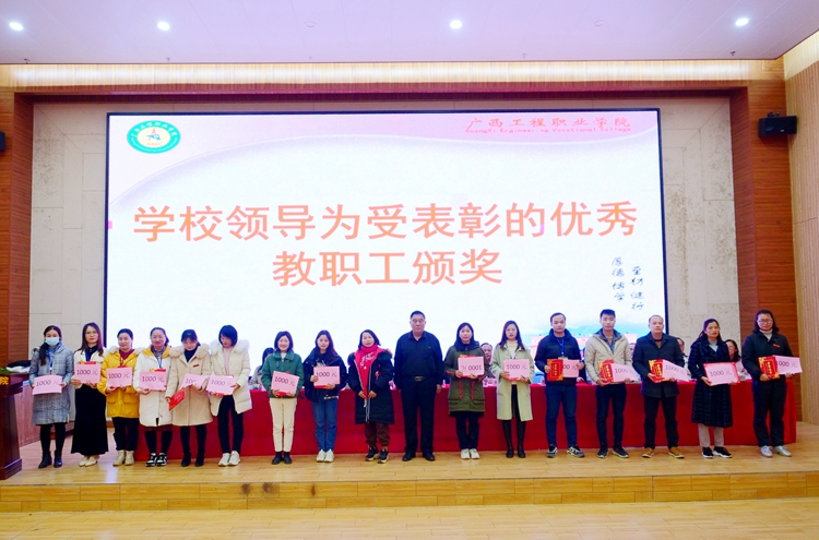自治区教育厅教育督导专员、党委书记吕伟斌,学校董事长李益,党委副书记、校长唐林,学校副董事长、副校长林艳,党委副书记黄秋霞,副校长吴先夏、罗艳妮、黄德伟,校长助理蒋茂丽、覃清香,受表彰的先进集体、先进个人及全体教职工参加了会议。会议由纪委书记、副校长彭高彬主持。