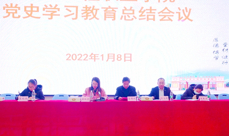 为深入学习贯彻习近平总书记对党史学习教育的历次重要讲话、作出的重要批示指示精神,中央、自治区及自治区教育系统党史学习教育总结会议精神,全面回顾总结学校党史学习教育的经验,巩固党史学习教育成果,2022年1月8日上午,beat365在图文信息大楼召开了党史学习教育总结大会。学校党委委员、各党(总)支部书记、支委,党委办公室全体成员,思政课教学部全体老师,校园文化建设中心负责人、部分党员代表参加会议,学校党委副书记黄秋霞同志主持会议。