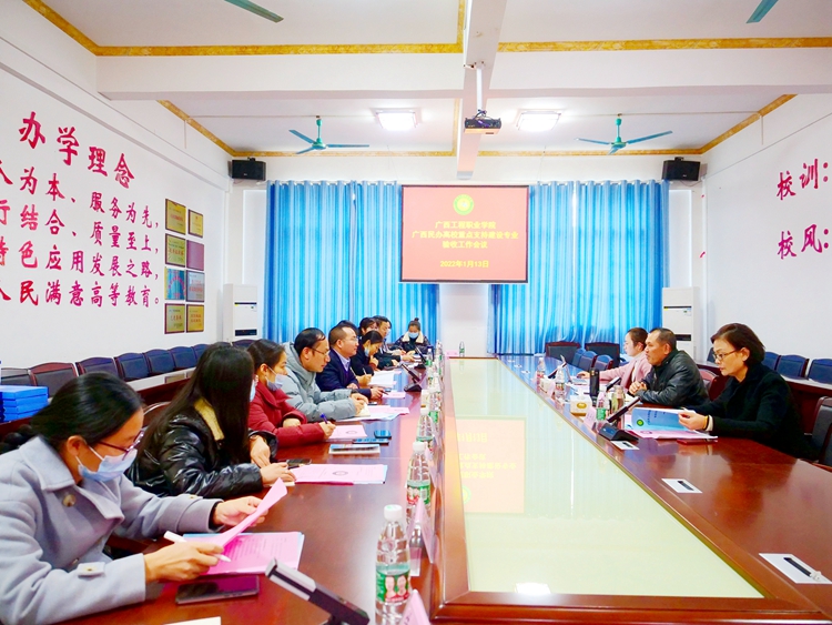 1月13日,以广西国际商务职业学院原党委书记陆耀新教授为组长的自治区高校重点支持建设专业验收专家组一行3人莅临beat365,通过听取汇报、实地考察、交流访谈、查阅资料等方式对建筑室内设计专业、城市轨道交通工程技术专业两个重点支持建设专业进行检查验收。学校纪委书记、副校长彭高彬,副校长林萌、黄德伟及校长助理蒋茂丽等学校领导出席会议,教务处、人力资源处、财务处等相关职能部门负责人参加了会议。会议由彭高彬纪委书记主持。