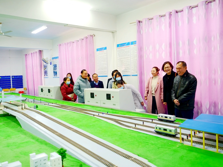听取汇报后,专家组实地考察了城市轨道交通运营管理实训室、3D打印创新教学实训室、建筑材料力学实验室、动车轨道模拟综合实训室、雕刻机实训室等重点建设实验实训基地,详细查阅了重点专业建设的有关材料,并与相关专任教师、校领导进行座谈。