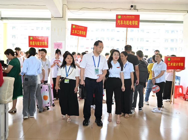 开学前学校领导检查各个迎新点,了解迎新准备工作情况