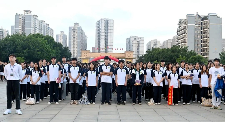 全体师生庄严肃立,奏唱国歌,向国旗行注目礼。此时此刻,爱国之心、强国之志、报国之情在师生们心中久久激荡。