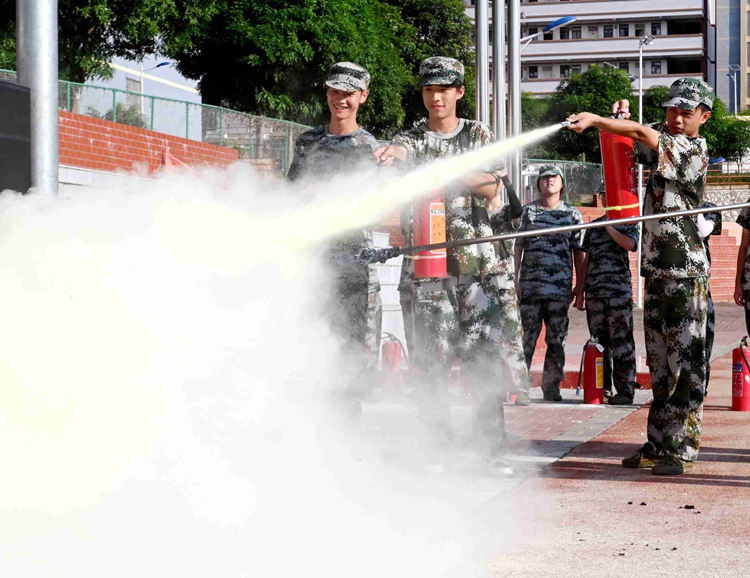 在保卫处工作人员及教官的指导下,新生们按照培训所传授的步骤要领,轮流上阵,进行灭火演练实操,对初起火灾的扑救有了更加直观的体验和认识,达到了“见火不慌,抬手就灭”的培训要求。