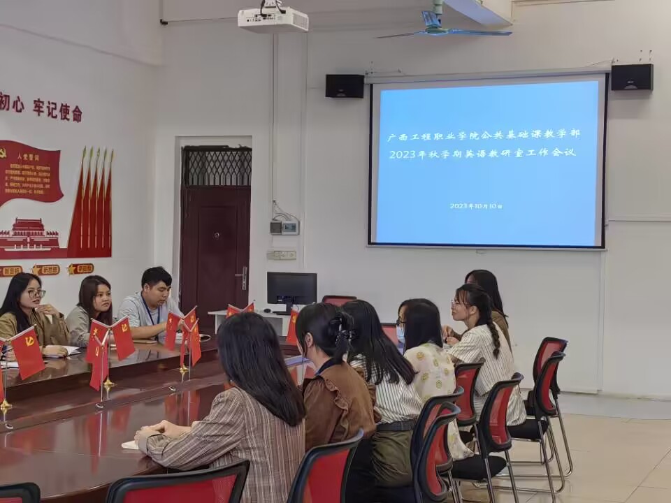 图为英语教研室开展教学研讨会现场