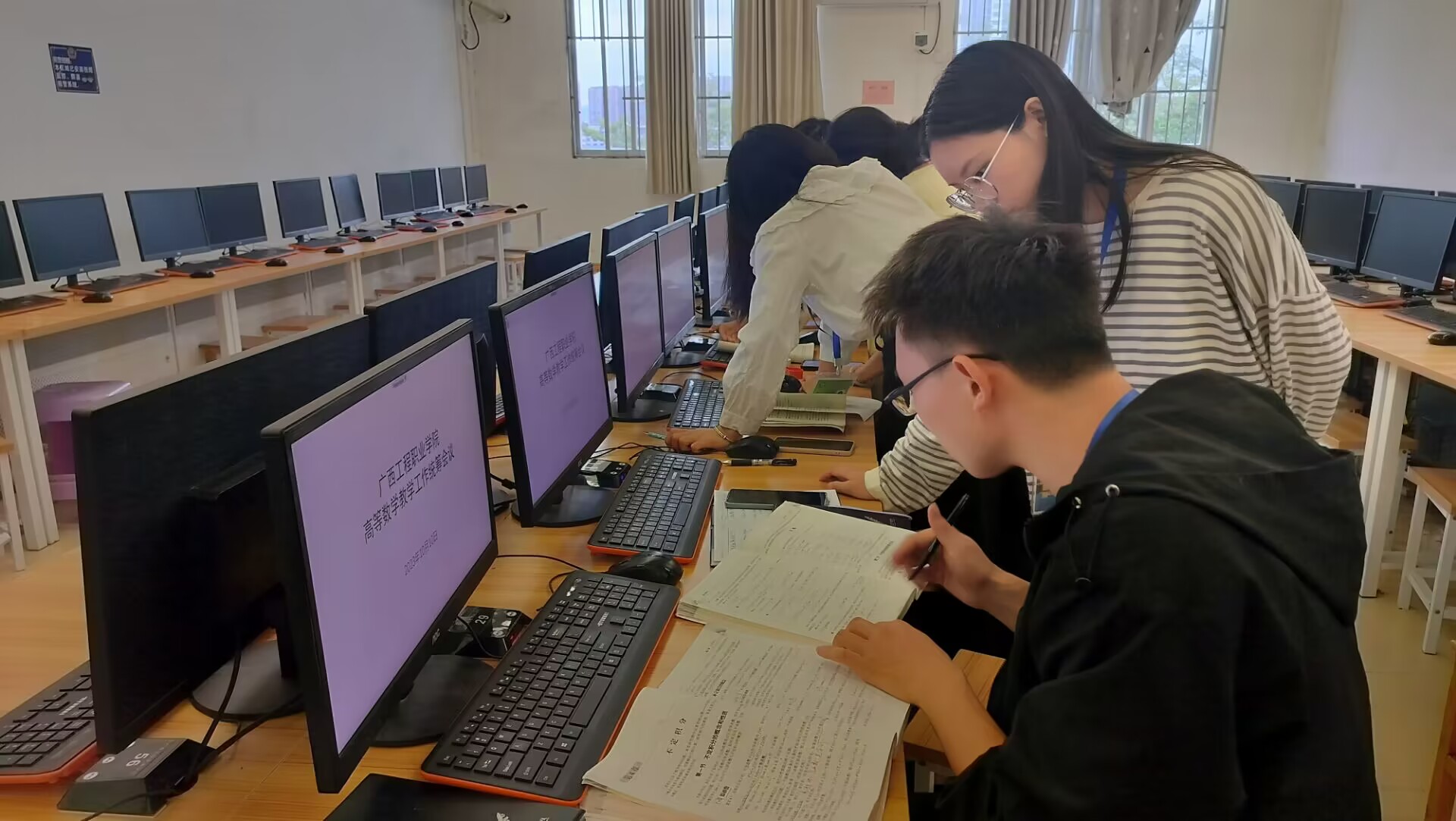图为计算机基础应用课程组开展教学研讨会现场