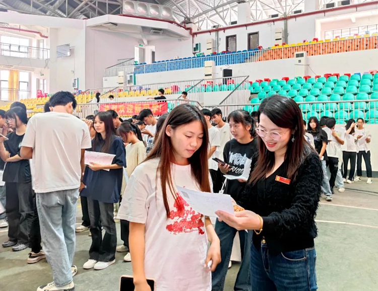 党委副书记黄秋霞到现场指导体检工作,热心回答学生提出的问题