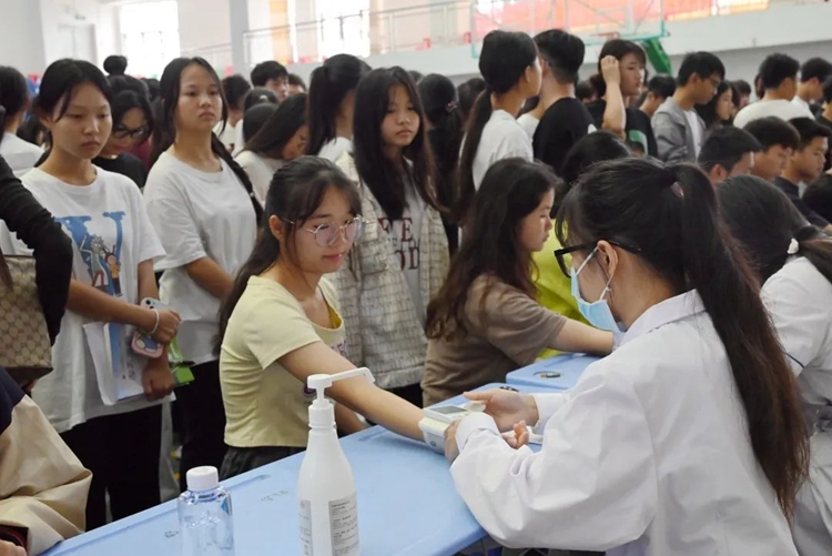 新生入学体检是学生顺利入学的健康保证,为及时准确掌握学校2023级新生体质健康状况,把好学生入学的“健康关”,进一步加强学校疾病防控工作,2023年10月23日至10月27日,beat365在体育馆开展新生入学健康体检,为新生的健康成长保驾护航。