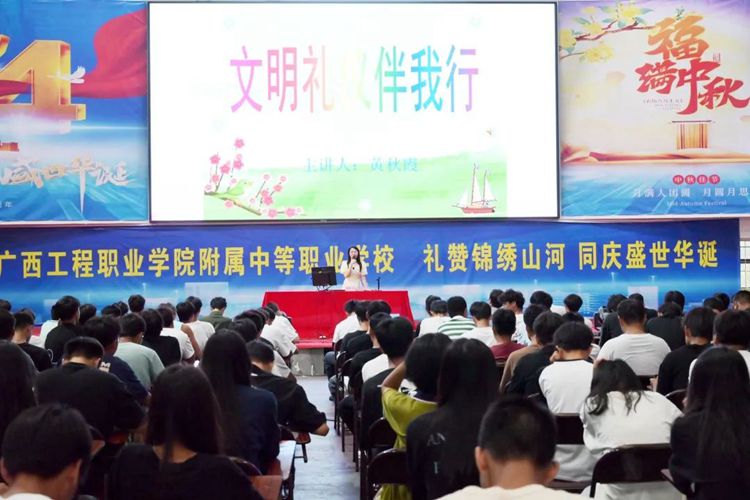 党委副书记黄秋霞作《文明礼仪伴我行》及《学生管理制度》专题讲座。在《文明礼仪伴我行》专题讲座中,黄秋霞副书记主要讲了礼仪的定义、社交礼仪、校园礼仪、服装穿着礼仪、常见误区等内容。其目的是给同学们提供一些实用的礼仪知识和技巧,以提高他们的礼仪素质,进而提高他们在社交和职业方面的竞争力。
