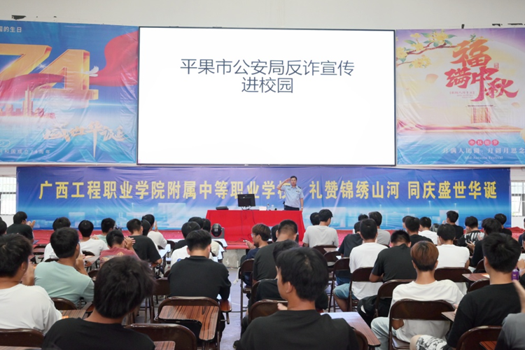 平果市公安局刑侦大队大队长覃源港作《防电信网络诈骗》的专题讲座,他深刻分析了当前大学生在面对各种电信网络诈骗案件时普遍存在的防范意识差、识别能力弱和应对水平低现象,并结合工作中的真实案例进行了宣传,介绍了电信网络诈骗的特征、渊源和现状,普及了校园防范知识,告诫大学生不要轻易提供个人信息,不要轻信微信群聊信息、陌生短信、二维码等内容。此次专题教育使同学们进一步增强了防诈骗的意识,加强了防诈骗的能力,提高了大学生的防诈骗素质。