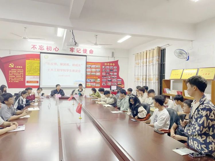 11月7日,土木工程学院党总支部书记、副院长杨竟在学院301会议室主持召开“听反馈,解困惑,助成长”学生座谈会,土木工程学院党总支部副书记朱海玲,分团委书记、学生科科长陈春任,办公室主任黄连芳等教师代表和学生代表参加了座谈。