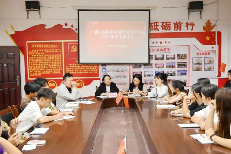 11月6日,经济管理学院党支部书记、院长庞英连在学院302会议室分别主持召开2022级和2023级学生座谈会。经济管理学院党支部副书记潘翠萍,分团委书记、学生科科长李东英,办公室主任雷红等教师代表和学生代表参加座谈。