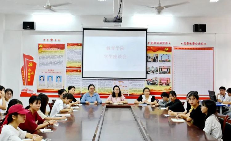 11月5日,教育学院学院党支部书记、院长梁凤琴在教育学院党员活动室601室主持召开学生座谈会,倾听学生的心声,加强老师和学生之间的沟通交流,解决学生急难愁盼的问题。教育学院党支部副书卢燕梅,分团委书记、学生科科长佴蕊,专任教师黄集桂、李婷慧及134名学生代表参加此次座谈会。