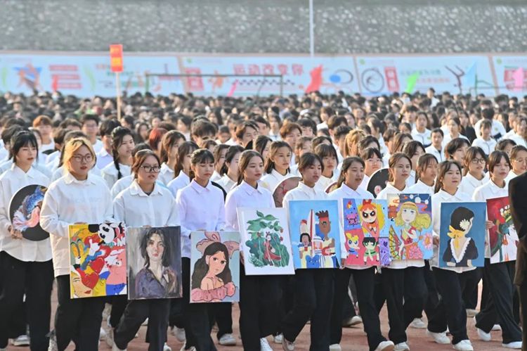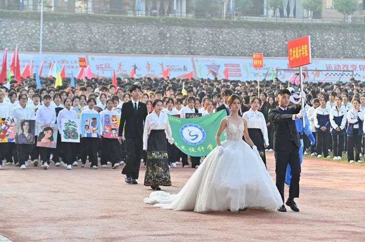 随后,各学院方阵的创意表演活力四射、异彩纷呈,激昂的歌声、动感的音乐、灵动的舞姿以及豪迈的口号声交织融汇,构成了一幅生动的校园画卷,传递了体育精神,展示了校园文化。