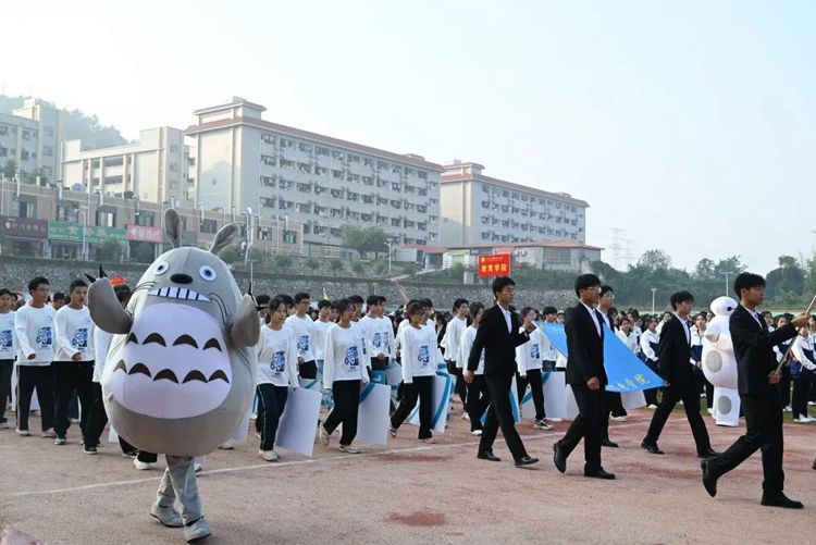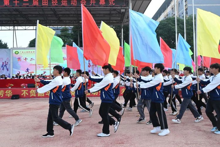 国旗队、会徽队、鲜花队、彩旗队、裁判员、教师代表队、二级学院各方阵出列,他们穿着整齐服装,高举方阵旗帜,喊着响亮口号,在慷慨激昂的乐声中昂首挺胸。坚定的步履踏在运动场上,传递着积极向上、团结拼搏的体育精神。