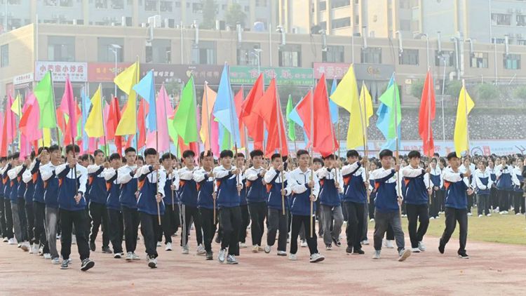 校长罗艳妮致开幕辞。体育强则中国强,国运兴则体育兴。罗校长表示,学校一直以来充分发挥体育在促进人的全面发展中的重要作用,落实立德树人根本任务,培养德智体美劳全面发展的社会主义建设者和接班人。开展运动会既是对学校体育工作、师生体育素质和精神风貌的一次检阅,也是对各参赛单位团队意识、竞争意识、集体荣誉感的一次考核,更是对运动员、教练员身体技能、竞技水平、心理素质的一次考验。