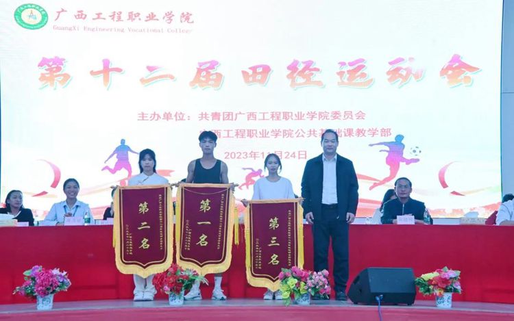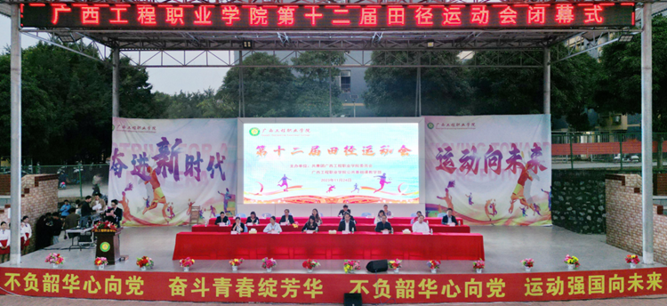 经过两天紧张激烈的角逐,完成了预定的各项赛事,2023年11月25日下午,beat365唯一官网在田径场举行第十二届运动会闭幕式。学校党委书记、督导专员蒙本曼,党委副书记黄秋霞,副校长黄德伟,副校长蒋茂丽,校长助理李明泽,校长助理梁善雅出席闭幕式,各二级学院院长(副院长)及各部门负责人参加闭幕式。闭幕式由学校团委老师何梓隆主持。