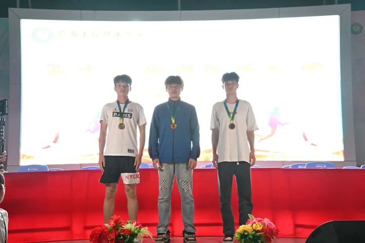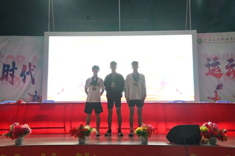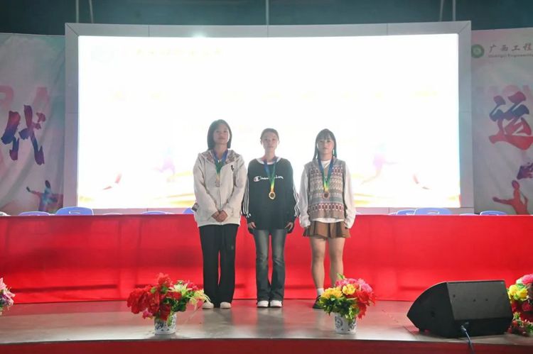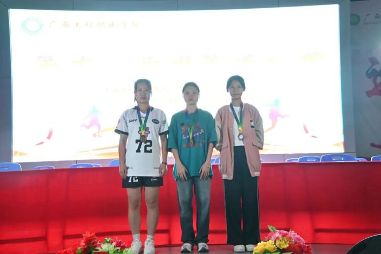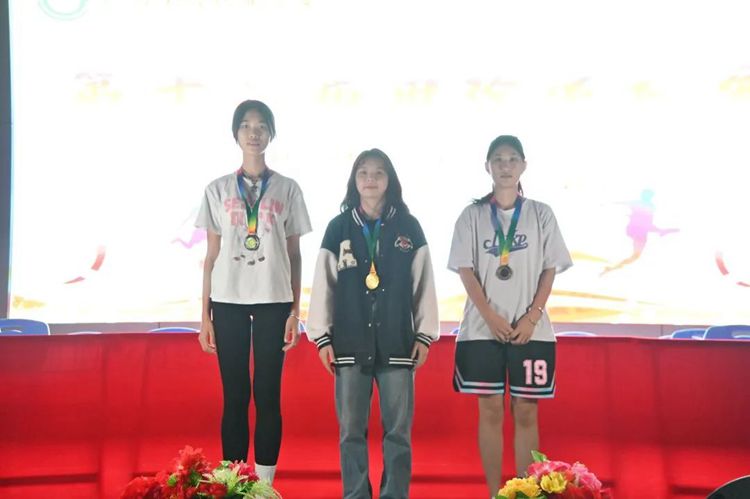 副校长蒋茂丽、校长助理梁善雅为获得男子组团体总分前三名的代表颁奖