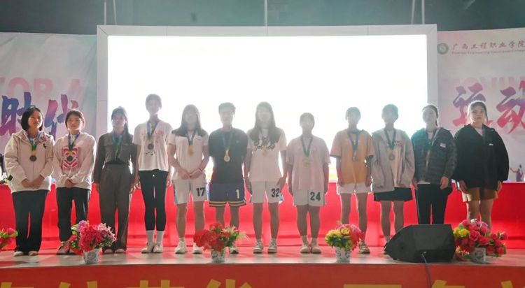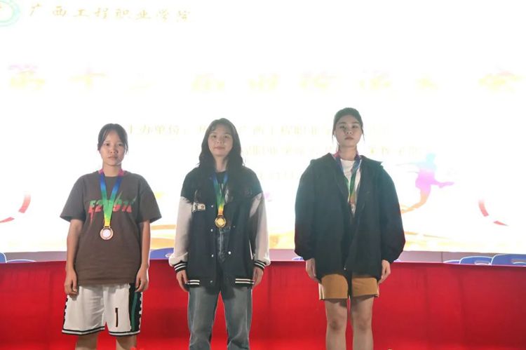 党委副书记黄秋霞、副校长黄德伟为获得女子组团体总分前三名的代表颁奖