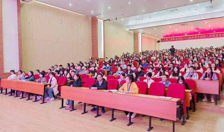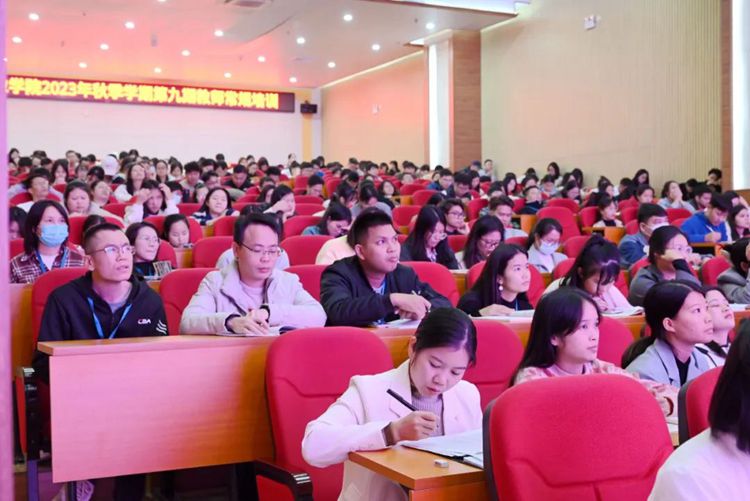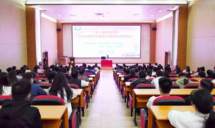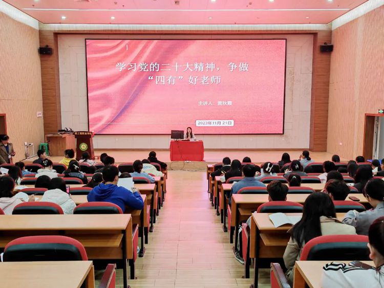 伟大的教育家雅斯贝尔斯曾说:“教育的本质是一棵树摇动另一棵树,一朵云推动另一朵云,一个灵魂唤醒另一个灵魂。”为深入学习宣传贯彻党的二十大精神,加强学校师德师风建设,打造高素质教师团队,引导广大教师做“有理想信念、有道德情操、有扎实学识、有仁爱之心”的“四有”好老师,2023年11月21日,beat365唯一官网举行2023年秋季学期第九期教师常规培训会,党委副书记黄秋霞作“学习党的二十大精神,争做‘四有’好老师”主题培训。全体教师参加了培训会。