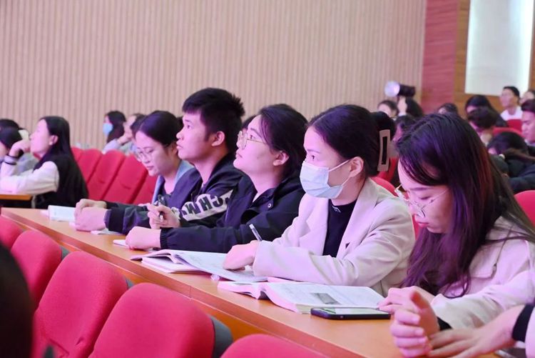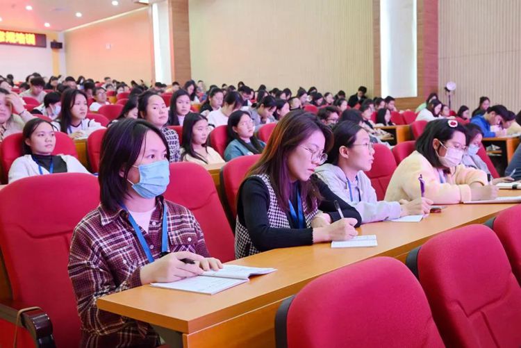党委副书记黄秋霞从“学思想、学理论” “新时代‘四有’好老师标准”“身边的榜样—2023最美教师”“违反教师职业行为十项准则典型案例”“当前教师队伍存在的突出问题”“建设高素质干部队伍”“教师需具备的自身素养”以及“教师的能力本领增长的几点思考”等八部分进行讲解。