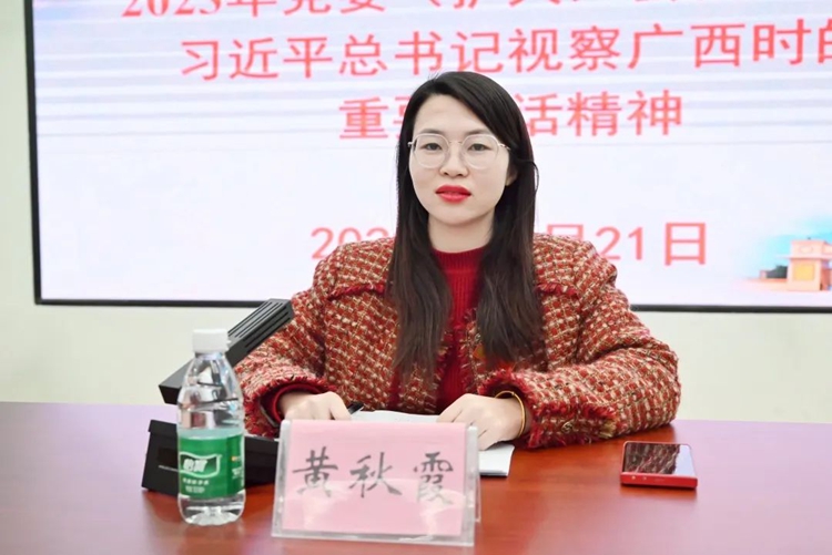 党委副书记黄秋霞传达学习习近平总书记视察广西时的重要讲话精神