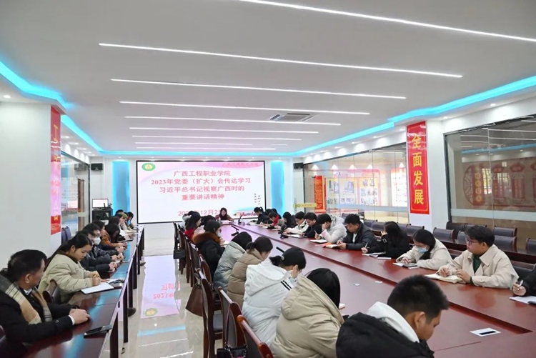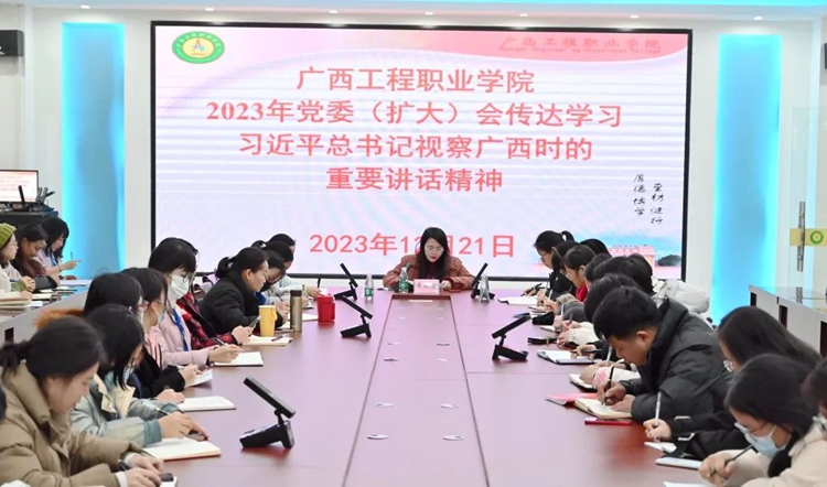 12月21日下午,beat365唯一官网党委(扩大)会议在图书馆一楼大数据中心召开,会议传达学习习近平总书记视察广西时的重要讲话精神。学校党委副书记黄秋霞,党委委员,各党(总)支部书记、副书记、支委,各部门负责人参加会议。会议由黄秋霞副书记主持。