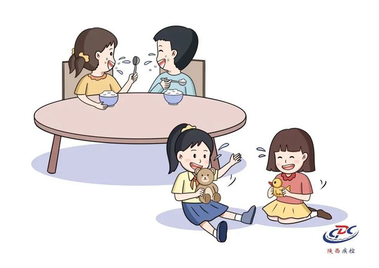 (2)传播途径:主要通过飞沫传播,例如面对面交流或接触患者用过的餐具、玩具等。