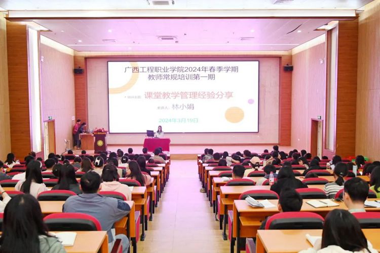 为贯彻落实立德树人根本任务,不断加强教师队伍建设,进一步提升教师的教学质量和教学管理水平,3月19日,学校在图文信息大楼一楼学术报告厅开展2024年春季学期第一期教师常规培训,公共基础课教学部林小娟副教授作课堂教学管理专题培训,全体教师参加了培训。
