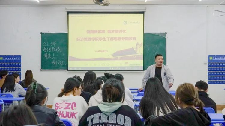 经济管理学院开展“领跑新学期,筑梦新时代,践行雷锋精神”的学生思想教育,旨在培养学生的创新意识、社会责任感和良好的品德素养。经济管理学院党支部副书记潘翠萍、分团委书记李东英分别作专题教育。