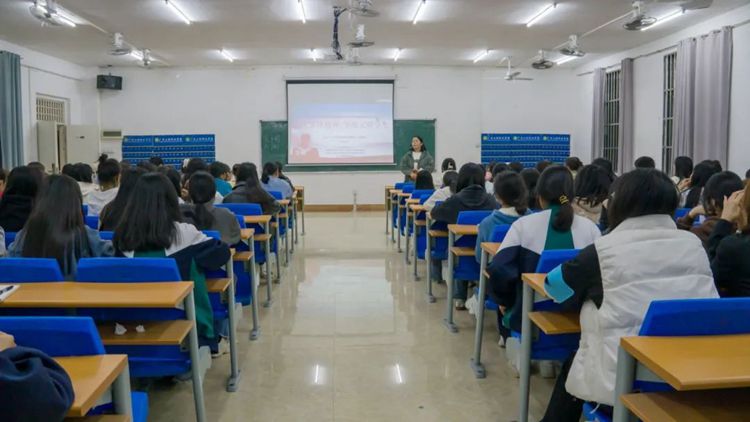 铁道与航空学院学生科长谢小玲给学生干部作专题教育