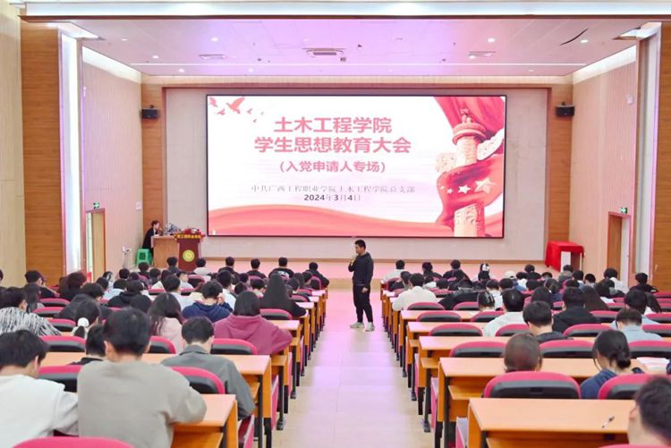 3月4日,土木工程学院分别开展入党积极分子、入党申请人、学生干部专场的学生思想教育大会,土木工程学院党总支副书记朱海玲、土木工程学院第二党支部书记陈春任分别作专题培训。