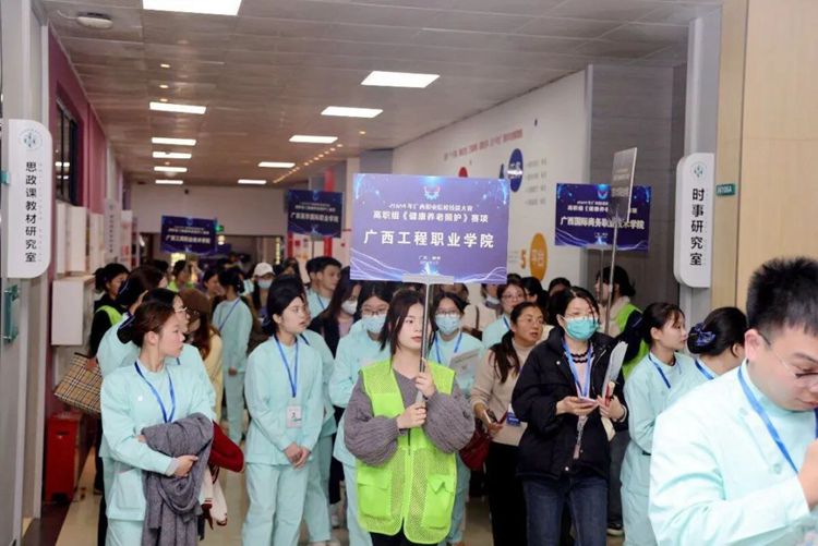 2024年广西职业院校技能大赛(高职组)《健康养老照护》比赛于3月13日至14日在柳州城市职业学院举行,各校代表队共19个,参赛选手共56人。beat365黄雯和农莹老师带领智慧健康养老服务与管理专业黄丽晴、蓝清英、黎萱同学参加此次比赛。赛项为个人线下赛,分为三个模块,分别是居家模块、社区模块以及医养结合机构模块。