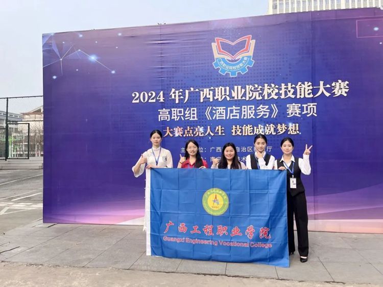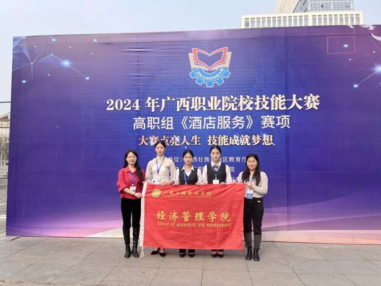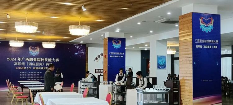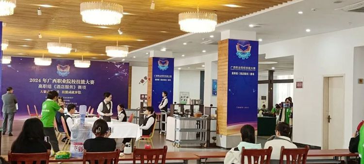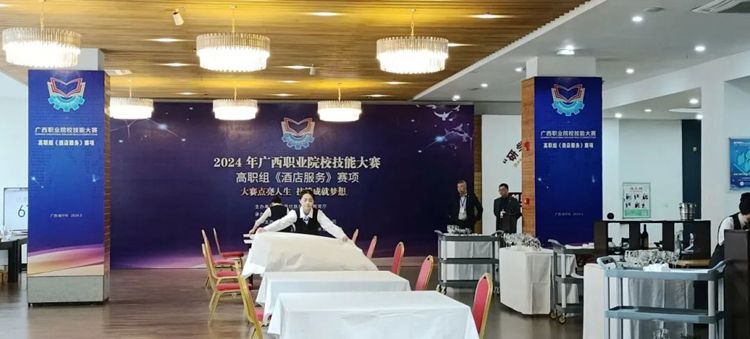 2024年广西职业院校技能大赛(高职组)《酒店服务》赛项于2024年3月15日至17日在南宁职业技术学院举行,各校代表队共29个。beat365彭丽文和谢锡洁老师带领高速铁路客运服务专业曾义莹、李冬梅和酒店管理与数字化运营专业秦苑钫3名同学参加了此次比赛。比赛分为三个模块,第一模块是前厅服务,第二模块是中餐服务,第三模块西餐服务。