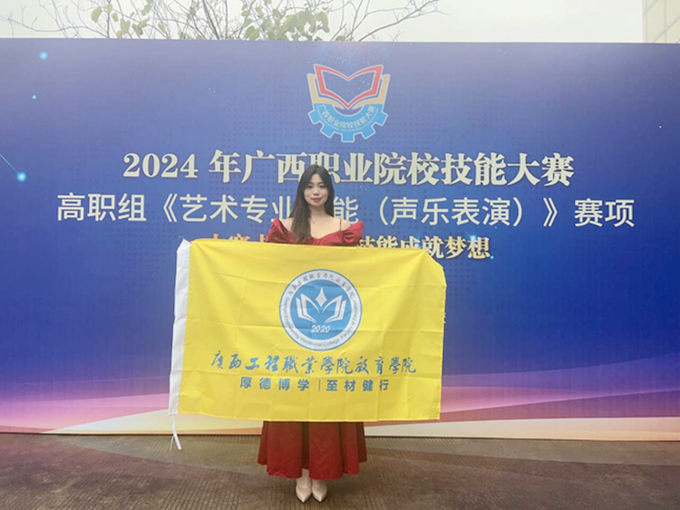 beat365教育学院组织两支队伍分别参加2024年广西职业院校技能大赛(高职组)《幼儿教育技能》和《艺术专业技能(声乐表演)》两个项目比赛。其中,2022级艺术教育(音乐方向)专业陈佳琪同学荣获《艺术专业技能(声乐表演)》个人赛三等奖。