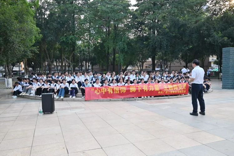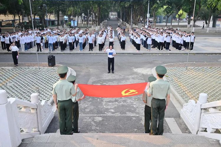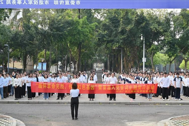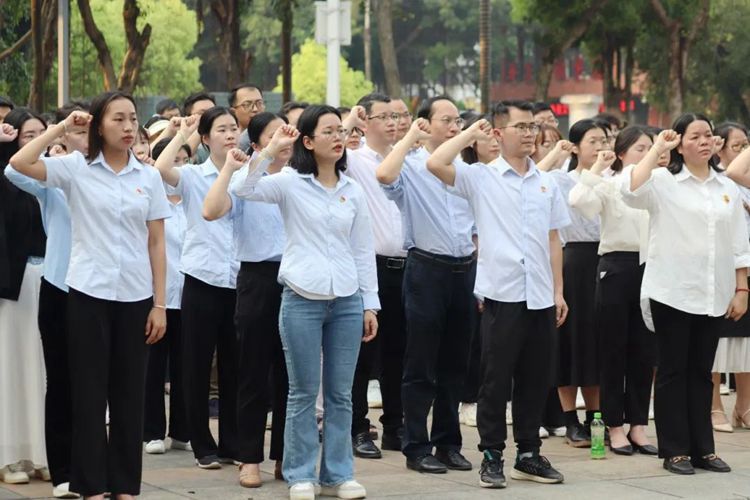 活动中,在党委书记蒙本曼同志的带领下,老党员重温入党誓词、新党员进行入党宣誓。全体党员在革命烈士纪念碑前,握拳举起右手,面向鲜红的党旗庄严宣誓,表明了继承革命先烈遗志,奋发向上的决心。随后,教师代表岑德票、学生代表张曼分别进行了发言。表示今后在学习工作中要时刻铭记革命先烈功勋,传承好红色基因,发扬好红色精神,不忘初心、牢记使命,不怕艰苦,敢于担当,勇于奉献,为实现中国式现代化奉献自己的力量。
