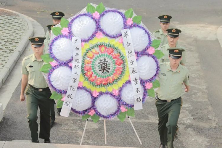 17点许活动正式开始。首先向平果市革命烈士纪念碑敬献花圈,在革命烈士纪念碑前,全体人员神情庄严肃穆,集体默哀三分钟。随后,在蒙本曼同志的带领下,全体人员有序向革命先烈敬献纪念小白花并瞻仰烈士纪念碑,深切缅怀革命先烈的不朽伟绩。