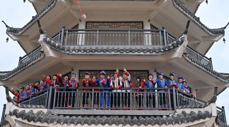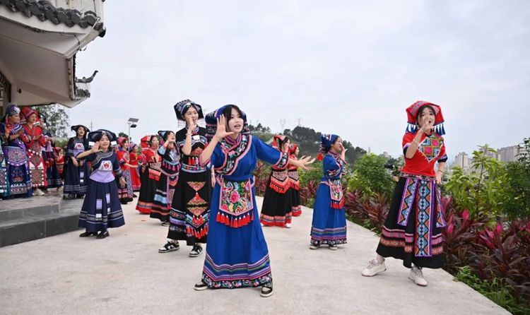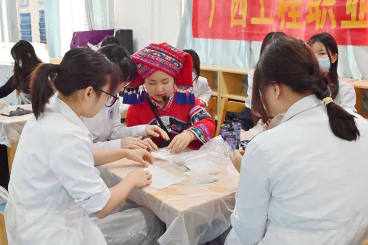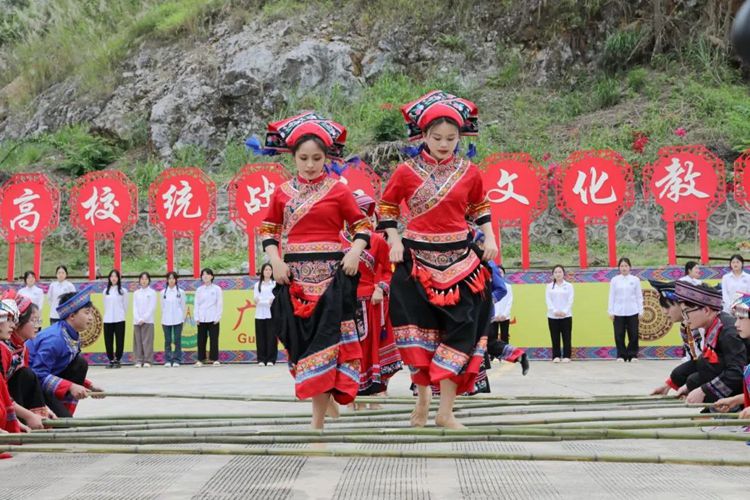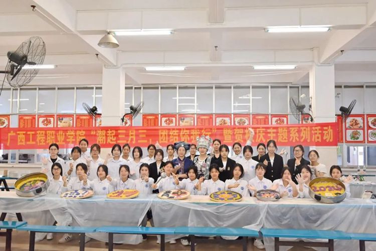 同学们意气风发、朝气蓬勃,踏着节拍踩着轻盈的舞步,尽情体验“广西三月三”特有的民族风情,形成校园一道靓丽的风景线。
