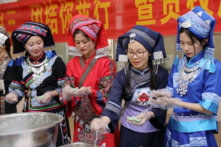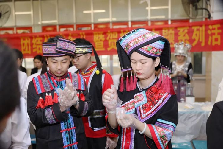 本次“广西三月三”系列活动以“潮起三月三,团结你我行”为主题,开展有“扎染制作”“广西特色美食(糯米饭、艾叶糍粑、油茶)制作”“‘广西三月三’微党课”“莲鼓越歌行舞蹈”“跳竹竿舞”“山歌对唱”等6项独具魅力的活动。
