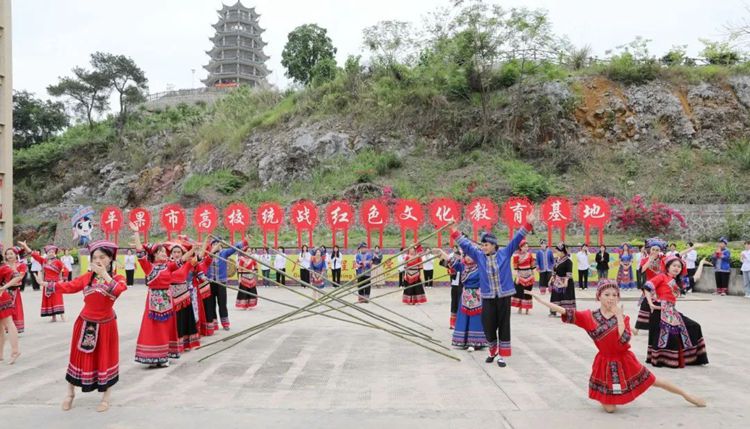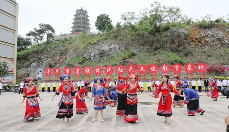 竿竿舞民族旋律,步步现团结情怀。4月9日,同学们身着民族服装,相聚在统战红色文化教育基地,欢快跳起了竹竿舞。纪委书记、副校长彭高彬等校领导到现场与师生一起共庆三月三。